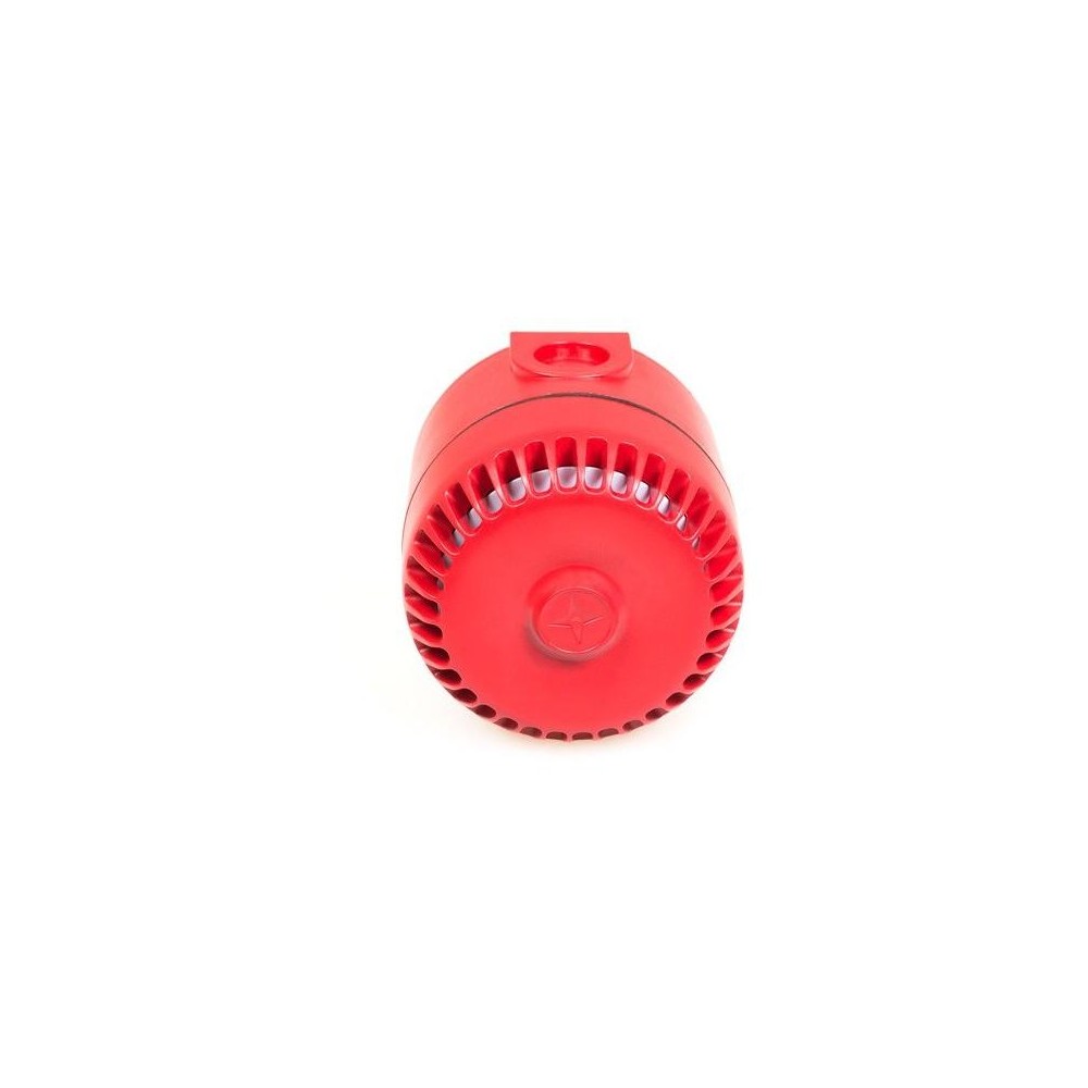 Dvoutónová nezálohovaná červená polarizovaná plastová siréna. Výběr 1. tónu z 32 možností, nastavitelný výběr z 32 tónů, spojité nastavení hlasitosti. Určena pro povrchovou montáž. Certifikát 0832-CPD-0128.